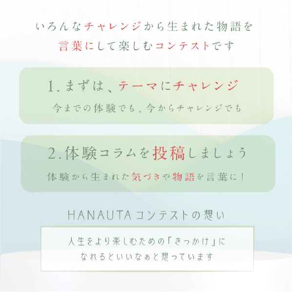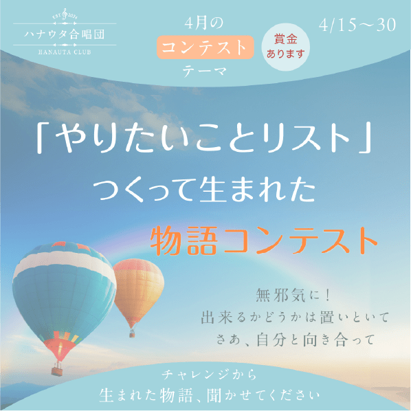 ハナウタ合唱団の「チャレンジテーマ」の体験談を団員と一般の方も含めて応募を募って選考するお祭りです